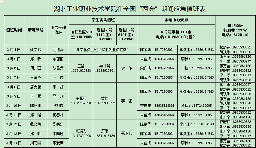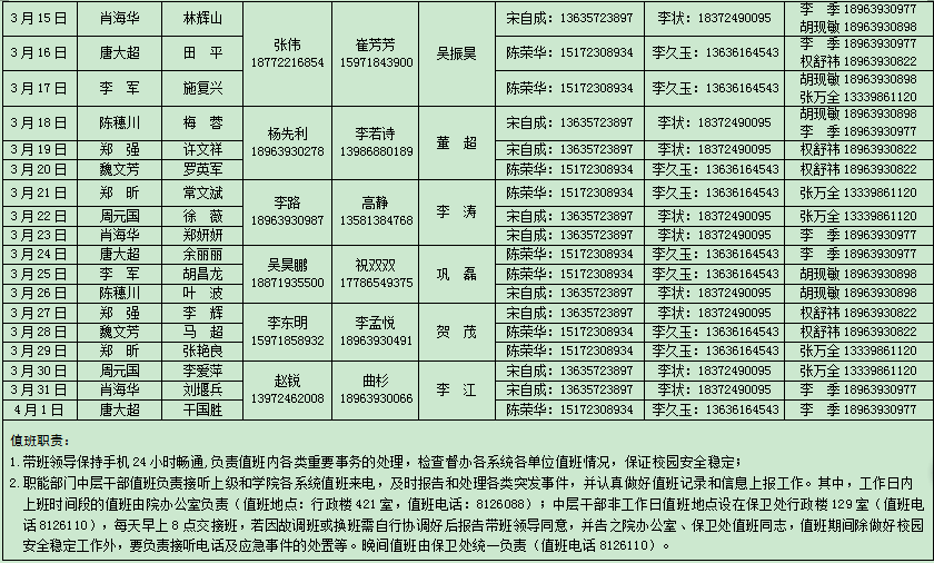 根据市委办公室市政府办公室《关于加强全国“两会”期间值班工作》(【2018】24号)精神,制订了《星空线上平台在全国“两会”期间应急值班表》,现将应急值班表印发给你们,请严格抓好落实。