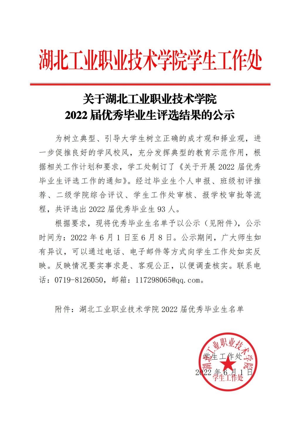 关于星空线上平台2022 届优秀毕业生评选结果的公示