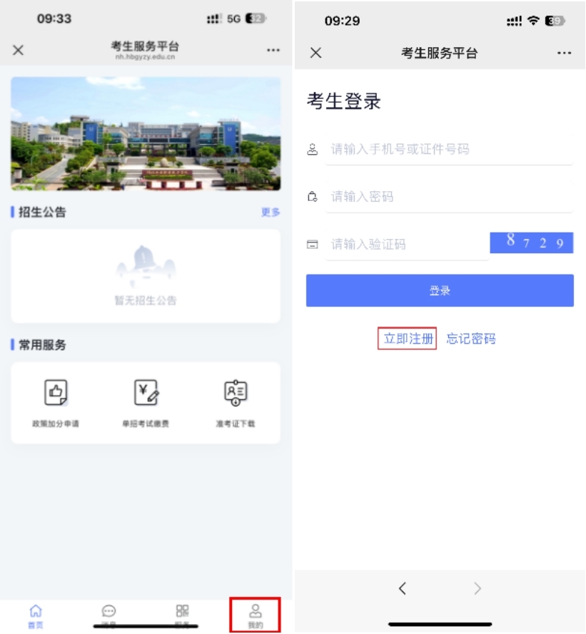 3.2 如果没有注册过账号,则先点击"立即注册"按钮后进入注册页面