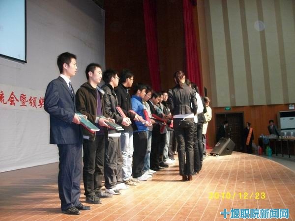 1223日晚由我院追天文学社承办,湖北医药学院江汉潮文学社和百草诗社、湖北汽车工业学院光线文学社和轩辕文学社及阳光左岸文学社、郧阳师专圣风文学社协办的十堰市大学生诗歌交流会暨颁奖晚会在我院会议中心举行