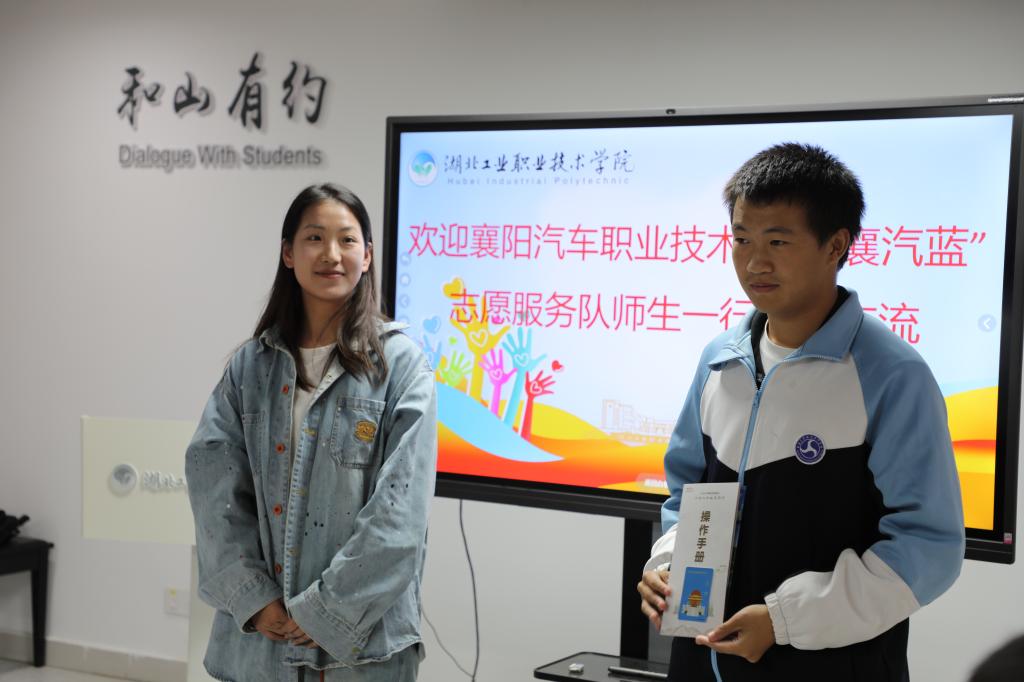 新闻网讯(文/玉声 图/方家棱)11月1日下午,襄阳汽车职业技术学院朱伟同学与“襄汽蓝”志愿服务队一行应邀来我校就志愿服务等工作进行交流研讨。学工部、团委、心理健康中心、艺术设计学院、智能工程学院、环境工程学院、机电工程学院等部门负责人接待陪同。