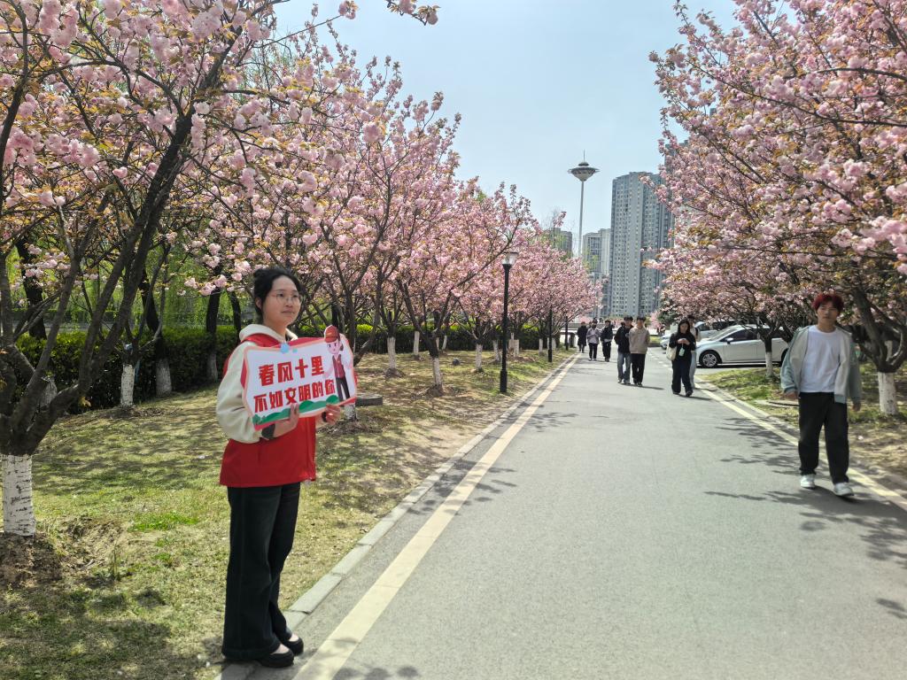 “樱”你而美 志愿同行:我校青年志愿者开展文明赏樱行动