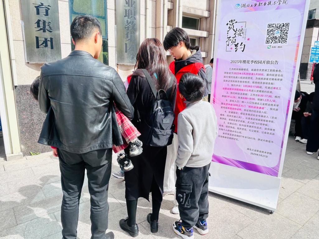 在学校正门口、樱花长廊、遇湖、万木林和大草坪,学生志愿者们身着统一标识志愿者“红马甲”,有的热情引导游客完成入校登记,指引游览路线;有的携带清洁工具,分组对校园公共区域进行深度清洁;还有的手持宣传牌在校园内游客聚集处开展文明行为引导。众多“红马甲”穿梭在校园内,成为春日湖工职的一道靓丽风景。