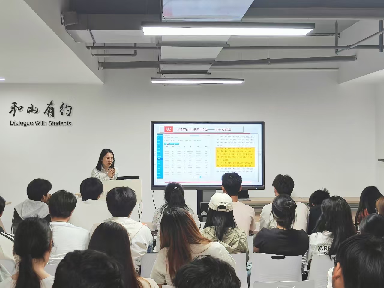 培训中,郑丽琼详细讲解了《星空线上平台第二课堂及成绩管理办法(试行)》的基本内容和运行情况,采用图例结合方式,现场演示“到梦空间”系统操作方法、管理流程、学分获取途径等,并针对二级学院分团委前期反馈的关于学校“二课制度”和“到梦空间”平台使用疑问一一给予解答。